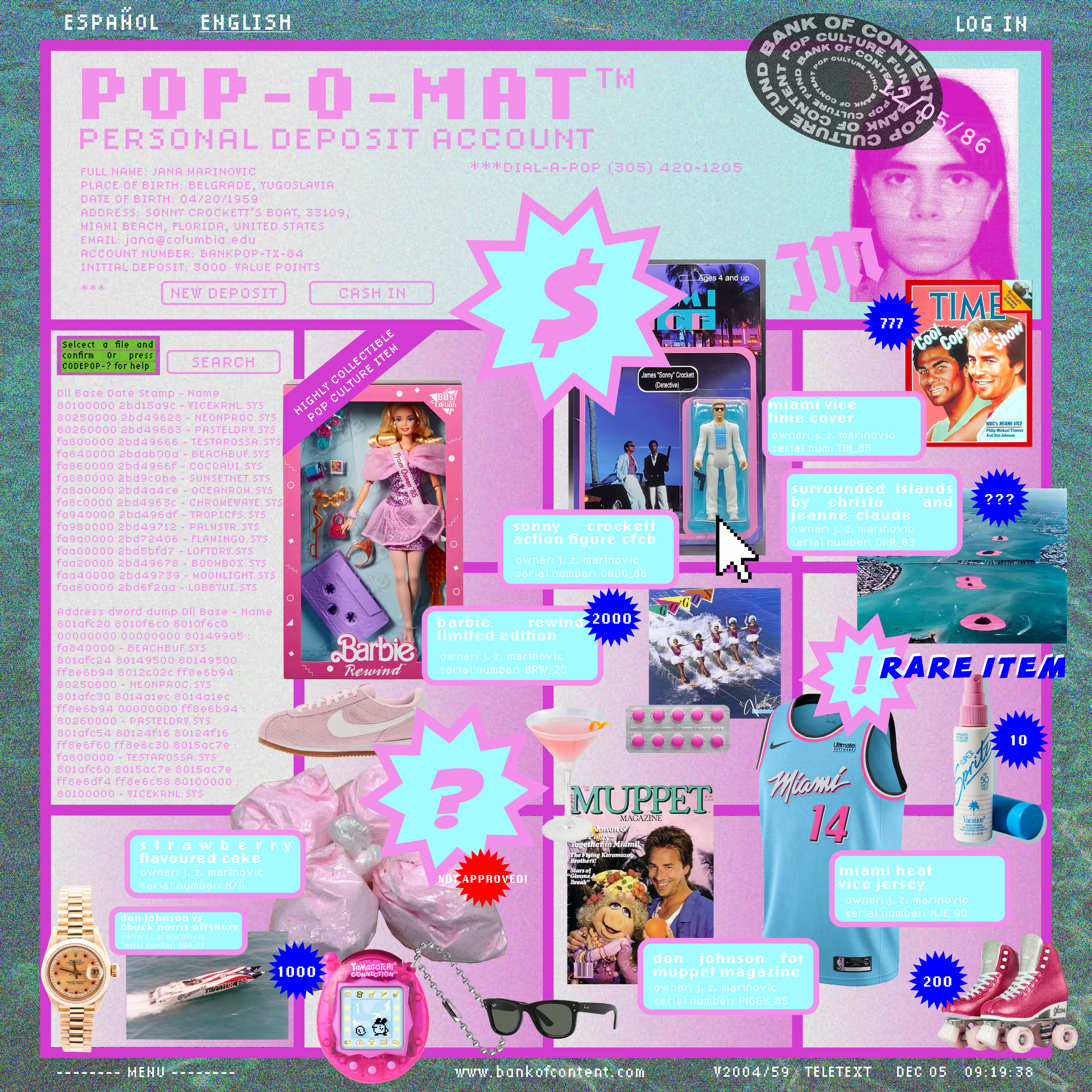 I <3 POP CULTURE, COLOR PINK, GAS STATIONS, SUBURBIA, DESERT, COW PRINTS, POLYMERS, TECHNICOLOR, ANALOGUE, INOX, CHECKERED BOARDS, Y2K, FAKE PALMS, SPARKLES, NOISE, SCREENSHOTS, FLASHY RENDERS, ROAD SIGNS, COLLAGES, DIGITAL FOOTPRINTS, ARCHIVES, CURSIVE, DINER MENUS, NEON, KITSCH, ID PICS, BAD SCANS, CARTOONS, OUT OF GAMUT, TRASHY ROM COMS, 70S, POSTERS, CACTUSES, MEMES, OLD WEBSITES, TABLOIDS, GPS MAPS, COOL TEXTS, TRAVEL ADS